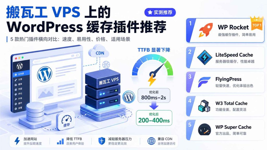 未经允许不得转载:Bandwagonhost中文网 » 2026 WordPress 缓存插件 TOP 5 对比推荐:付费免费全覆盖(搬瓦工 VPS 实测)