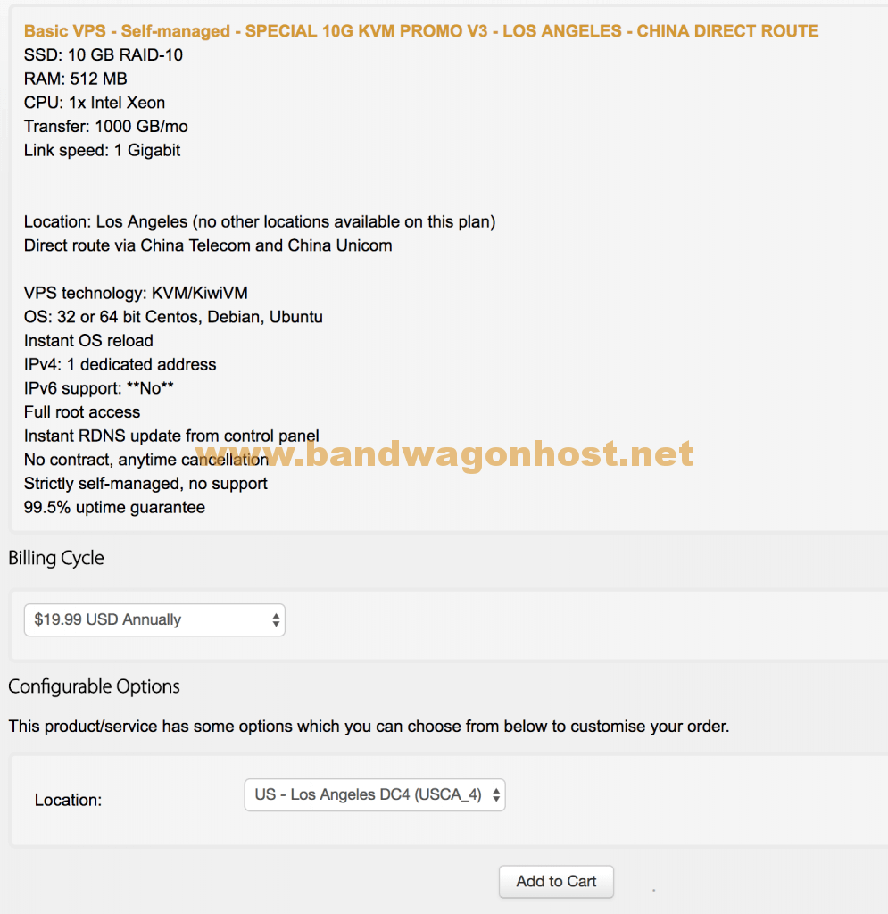 今天看到搬瓦工的一款限定机房的促销方案已经由限定 DC2 QNET 变成了限定 DC4 MCOM,已购买的不影响,新购买的就是 DC4 MCOM 了,希望大家悉知。DC4 MCOM 暂时没有走 CN2 GT,购买前大家做好测试。方案名称是“SPECIAL 10G KVM PROM...